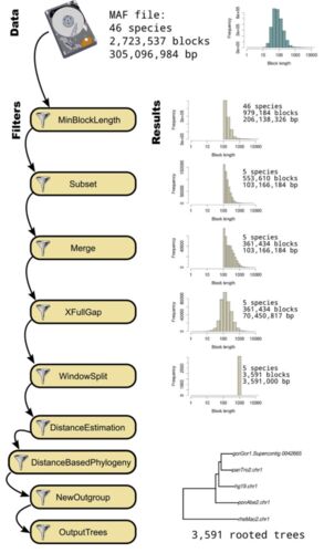 進化的比較ゲノム解析および集団ゲノム解析は、2つ以上のゲノム間の相同なヌクレオチド位置を記録するゲノム配列のアラインメントに基づいている。遺伝子アラインメントは3種類の文字のedit(ミスマッチ、挿入および欠失)のみを用いて記載されているが、ゲ…