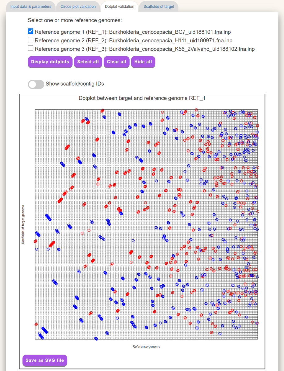 Multi-CSAR は、ターゲットゲノムのアセンブリにおいて、複数のリファレンスゲノムに基づくより大きなスキャフォールドにコンティグを効率的かつ正確に順序付け、方向付けることができるウェブサーバである。Multi-CSAR は、ターゲットゲノムと複数のリファレンスゲノムがある場合、まずターゲットゲノムと各リファレンスゲノムに共通する配列マーカーを特定し、これらの配列マーカーを利用して各単一リファレンスゲノムに基づくターゲットゲノムのscaffoldを計算し、最後にすべての単一リファレンス由来のscaffoldを組み合わせて複数リファレンス由来のscaffoldにする。Multi-CSAR を実行するには、scaffold されるターゲットゲノムと 1 つまたは複数のリファレンスゲノムを multi-FASTA フォーマットでアップロードする。また、Multi-CSARでは、リファレンスゲノムに対して異なる重みを自動的に計算する「weighting scheme of reference genomes」、配列マーカーを特定する「NUCmer on nucleotides」または「PROmer on translated amino acids」を選択することができる。出力ページでは、Multi-CSARは、複数のリファレンスゲノムから得られたスキャフォールドを、スキャフォールドされたコンティグの正確さを視覚的に確認するための2つのグラフ表示(Circos plotとdotplot)およびスキャフォールドをさらに詳細に確認するための表形式で表示する。Multi-CSAR は、http://genome.cs.nthu.edu.tw/Multi-CSAR/ でオンライン公開されている。