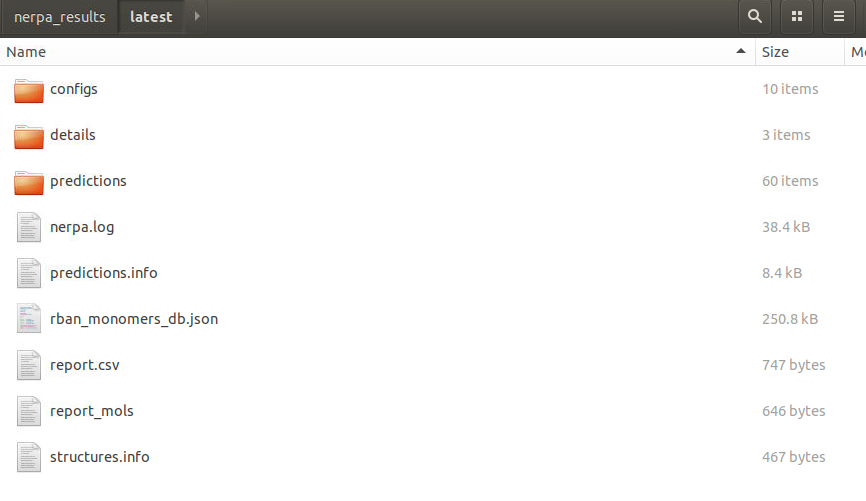 reports.csvにはマッチしたNRP-BGCペアとスコアが含まれている。details/には、各マッチの詳細な説明と正確なアラインメントを含まれている(マニュアルより)。