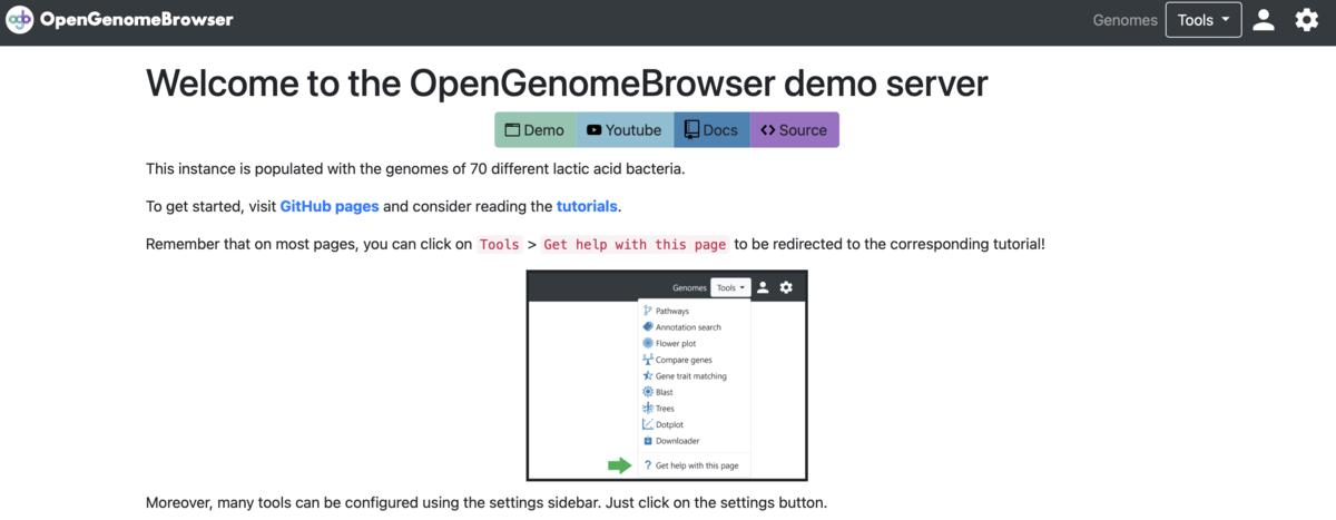 デモ;乳酸菌のゲノム70個を使ったデモンストレーション用のインスタンスが公開されている。