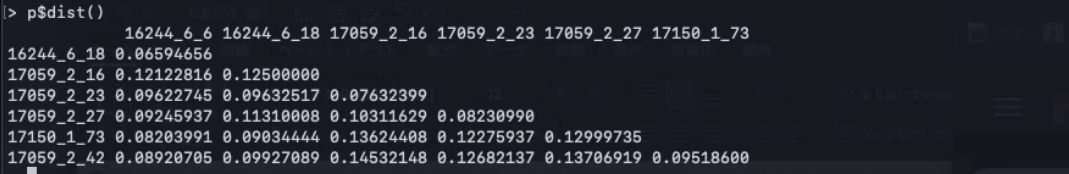 2,(link)を使った全ゲノムペア間のGene Abundance Distanceの計算(veganパッケージのvegdist()のラッパー)。デフォルトの距離法は Bray-Curtis距離(bray)。